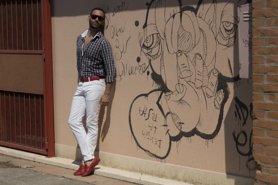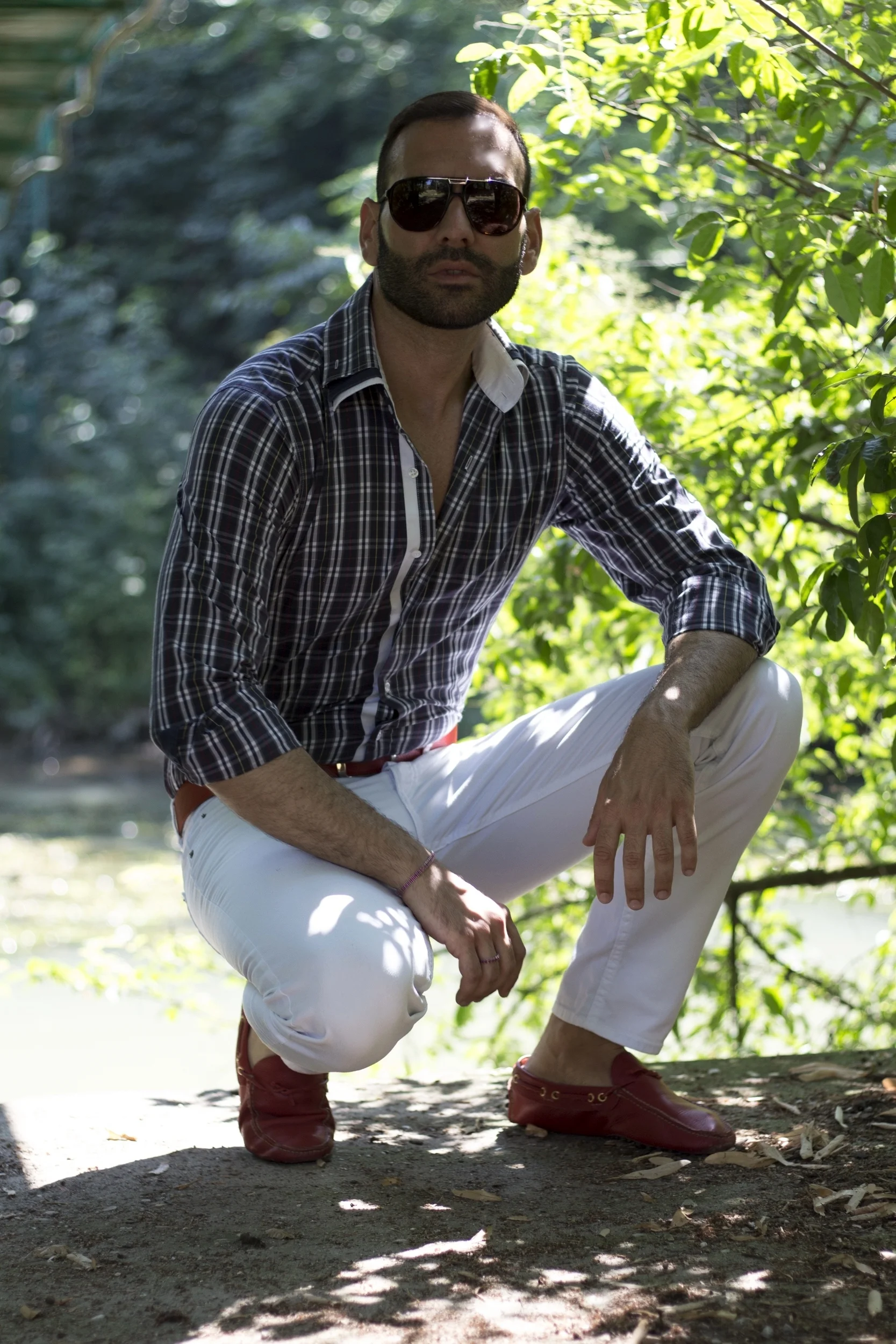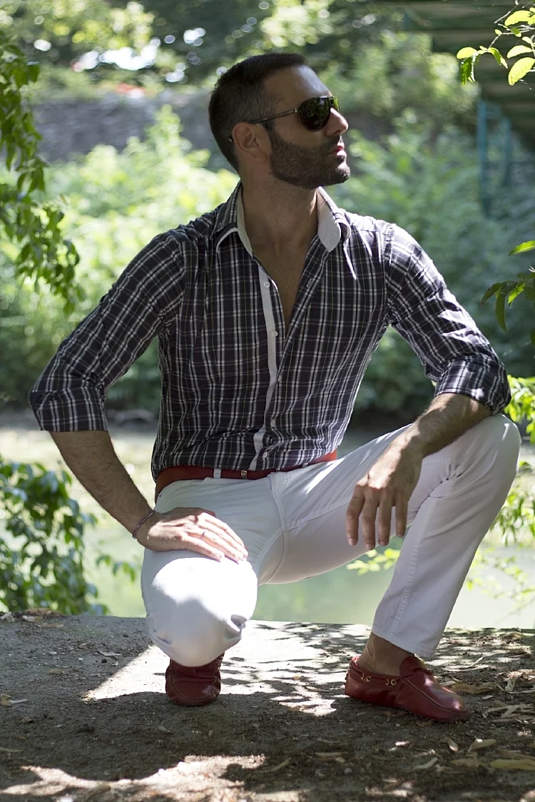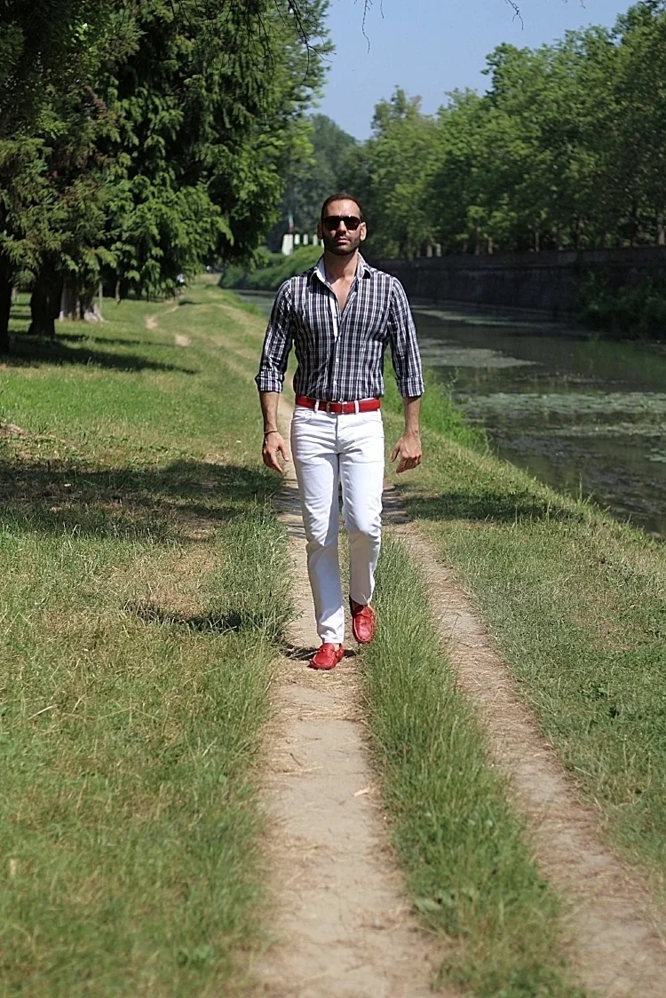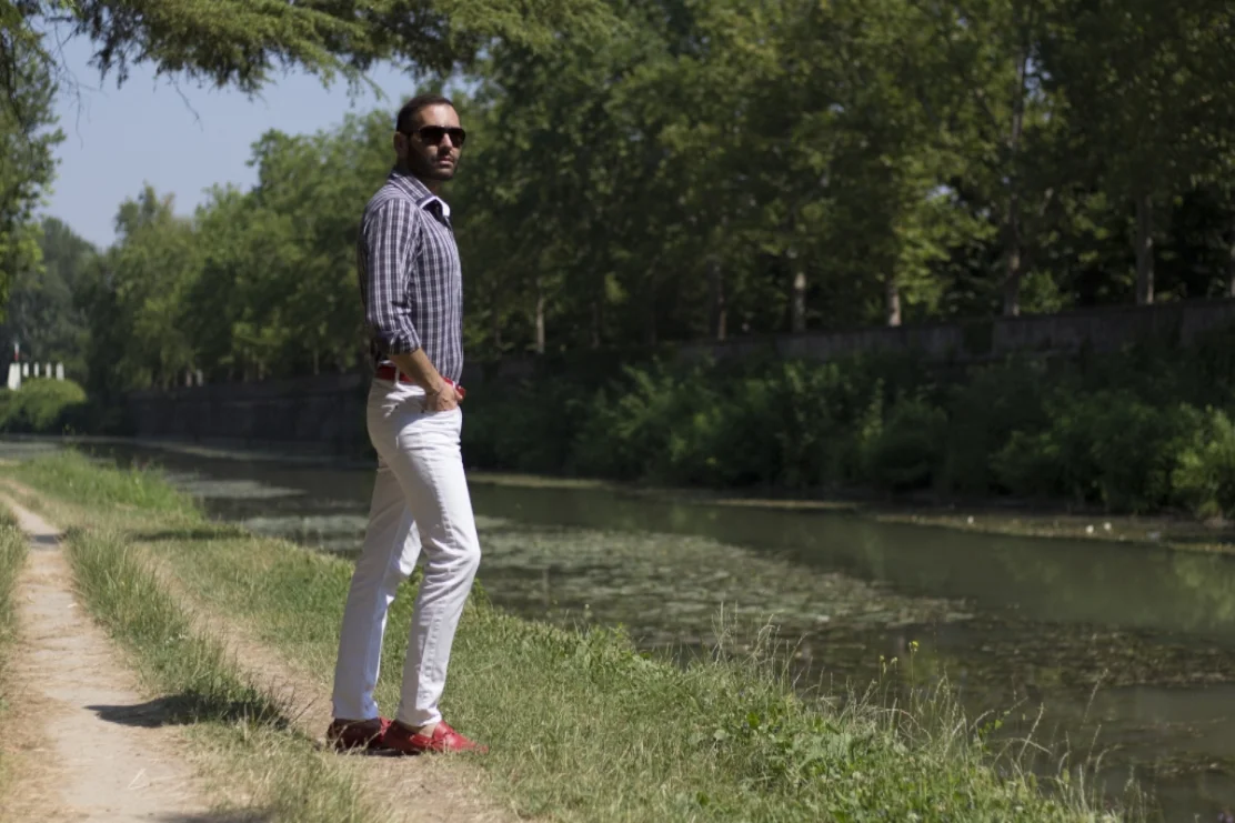 Occhiali: Dolce & Gabbana/ Camicia: Nara Camicie / Pantaloni: H&M / Cintura: No Logo / Mocassini: Car Shoe