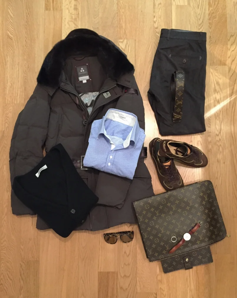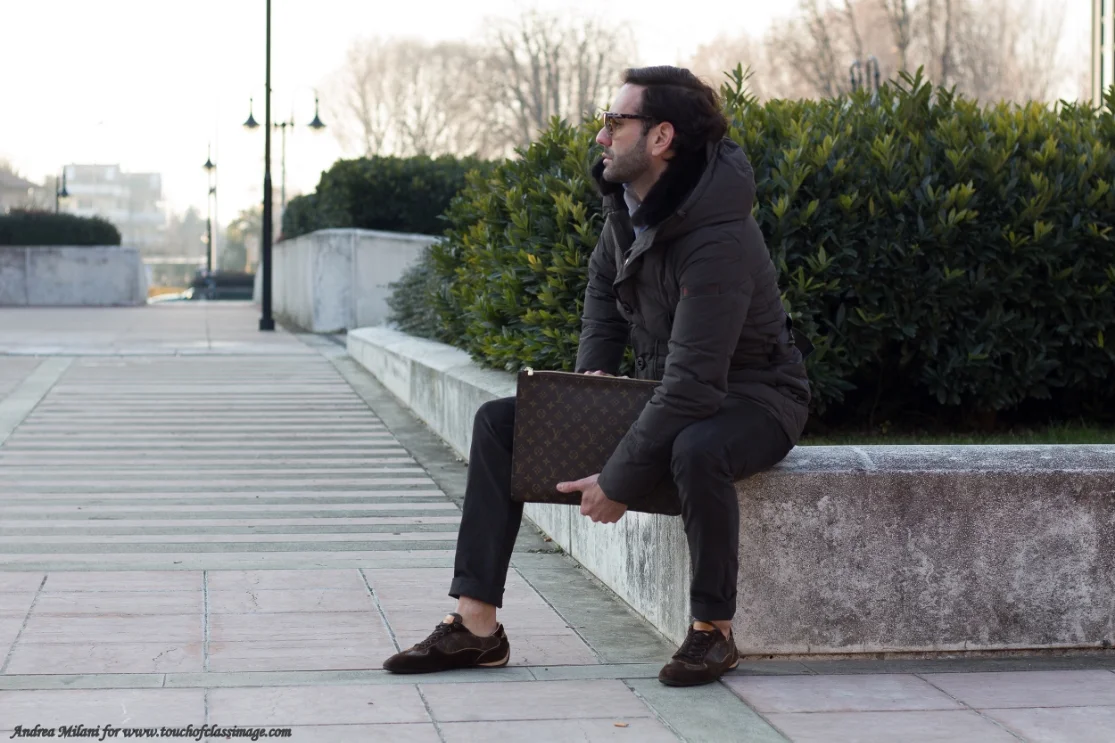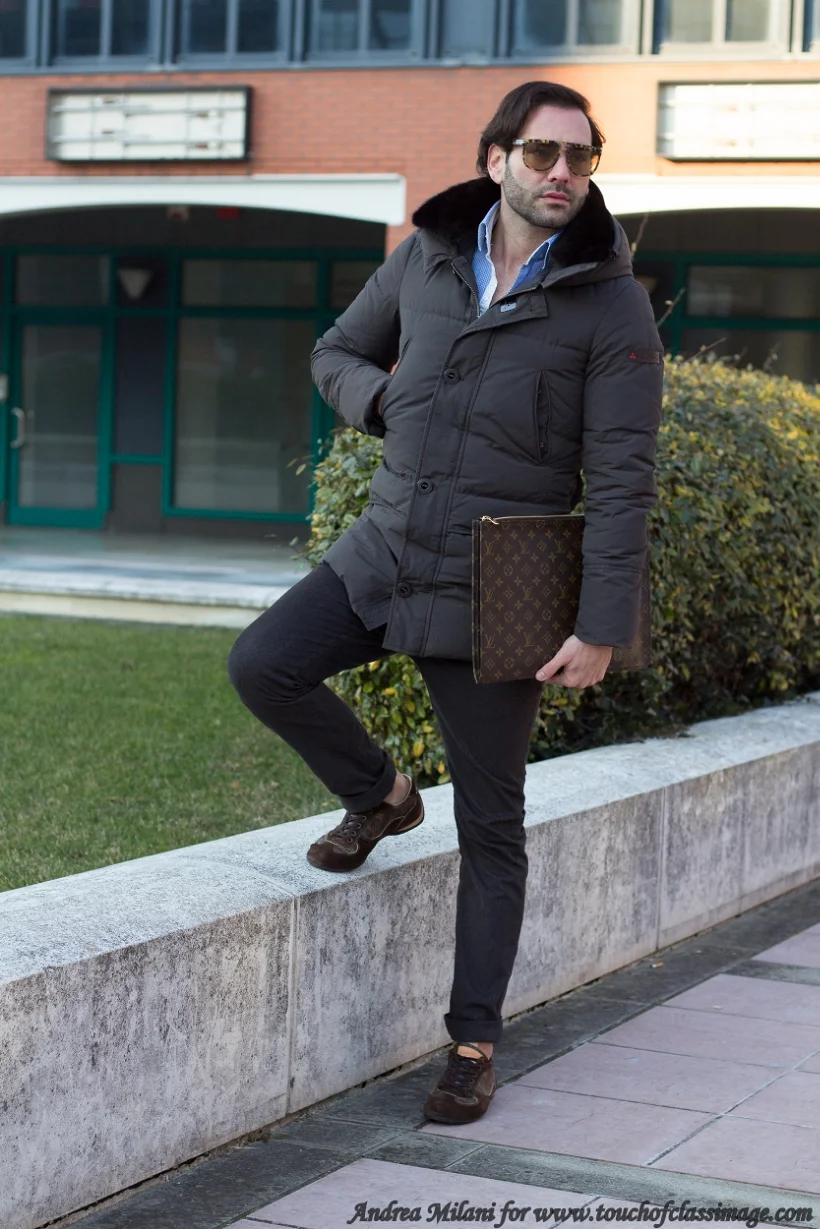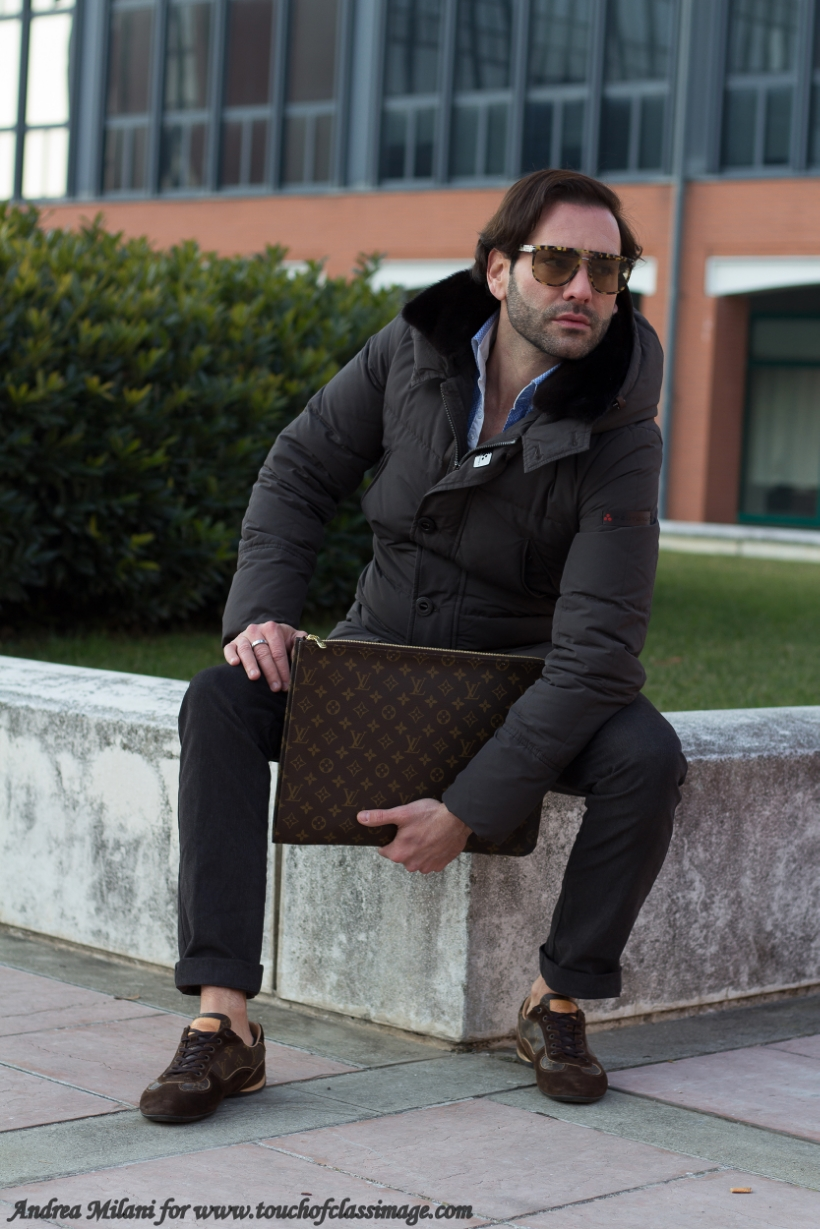 Un giaccone Peuterey che ho voluto personalizzare con un collo di visone natural brown, ma quello che colpisce di questo mio look è il pen-dànt che ho voluto fare tra il porta documenti, l'agenda, la cintura e le sneakers rigorosamente della maison francese Louis Vuitton.