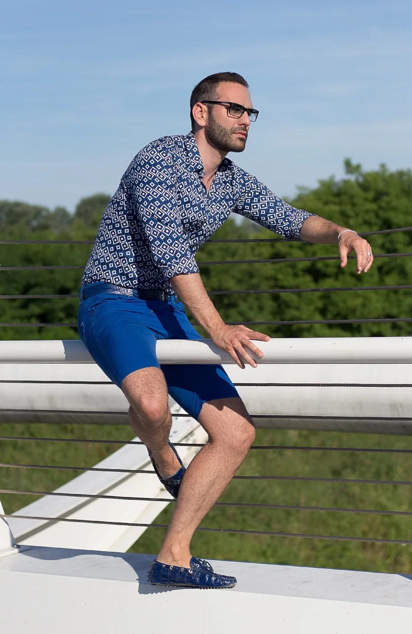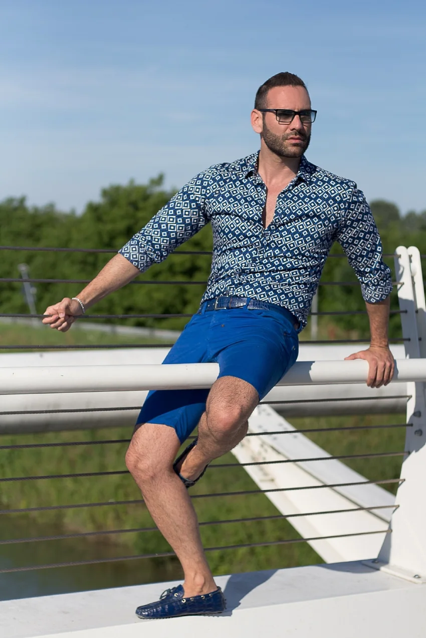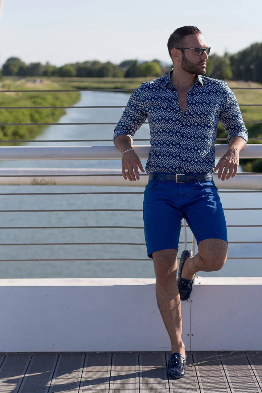 Occhiali: Dolce & Gabbana / Camicia: Zara / Bermuda: Alexander McQueen / Mocassini e Cintura: Jacopo Ridolfi