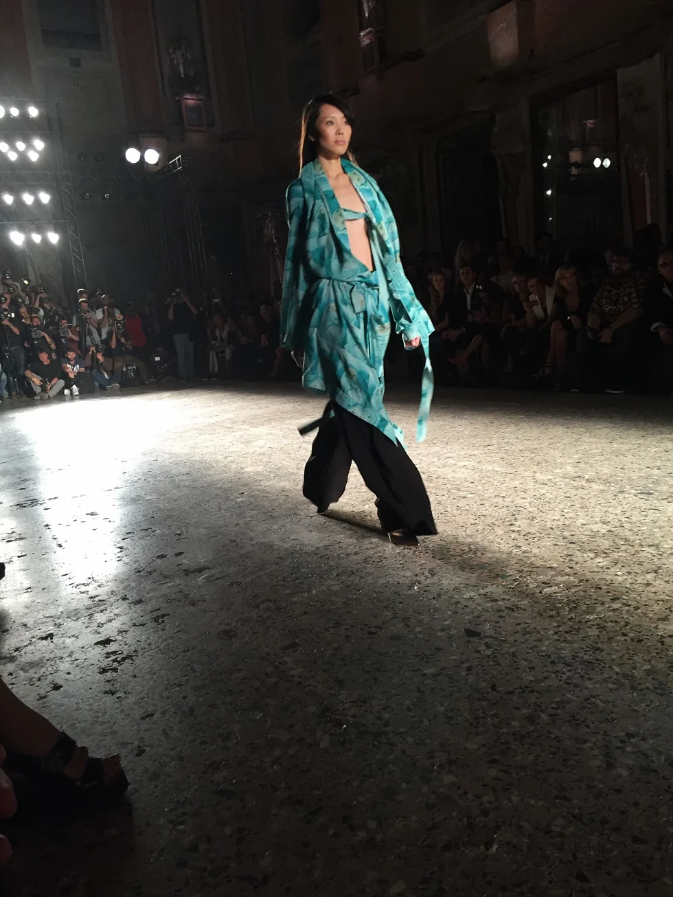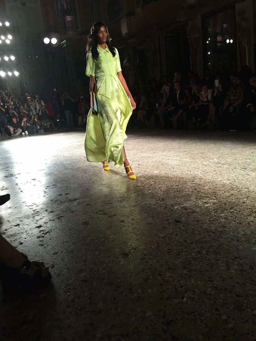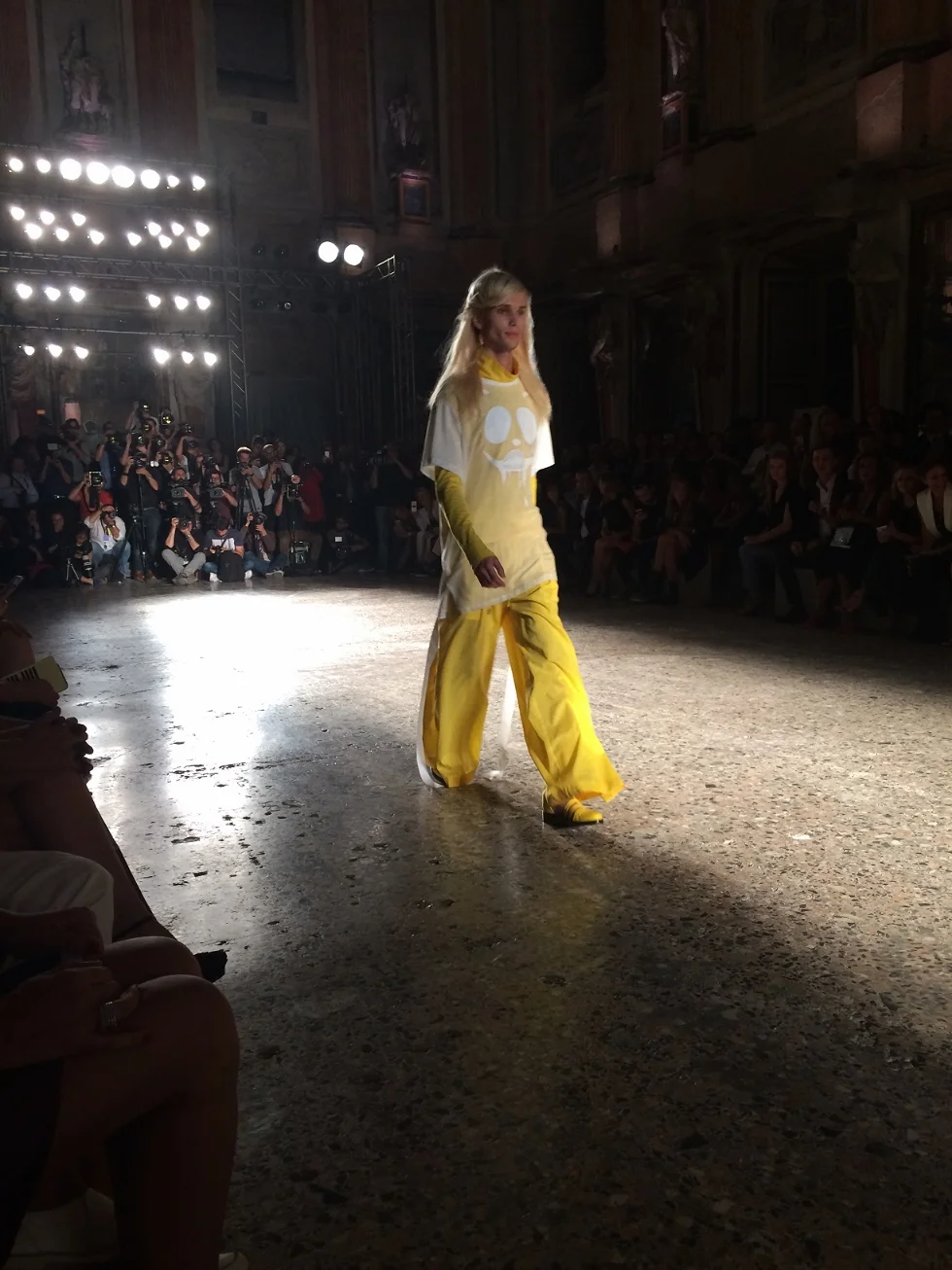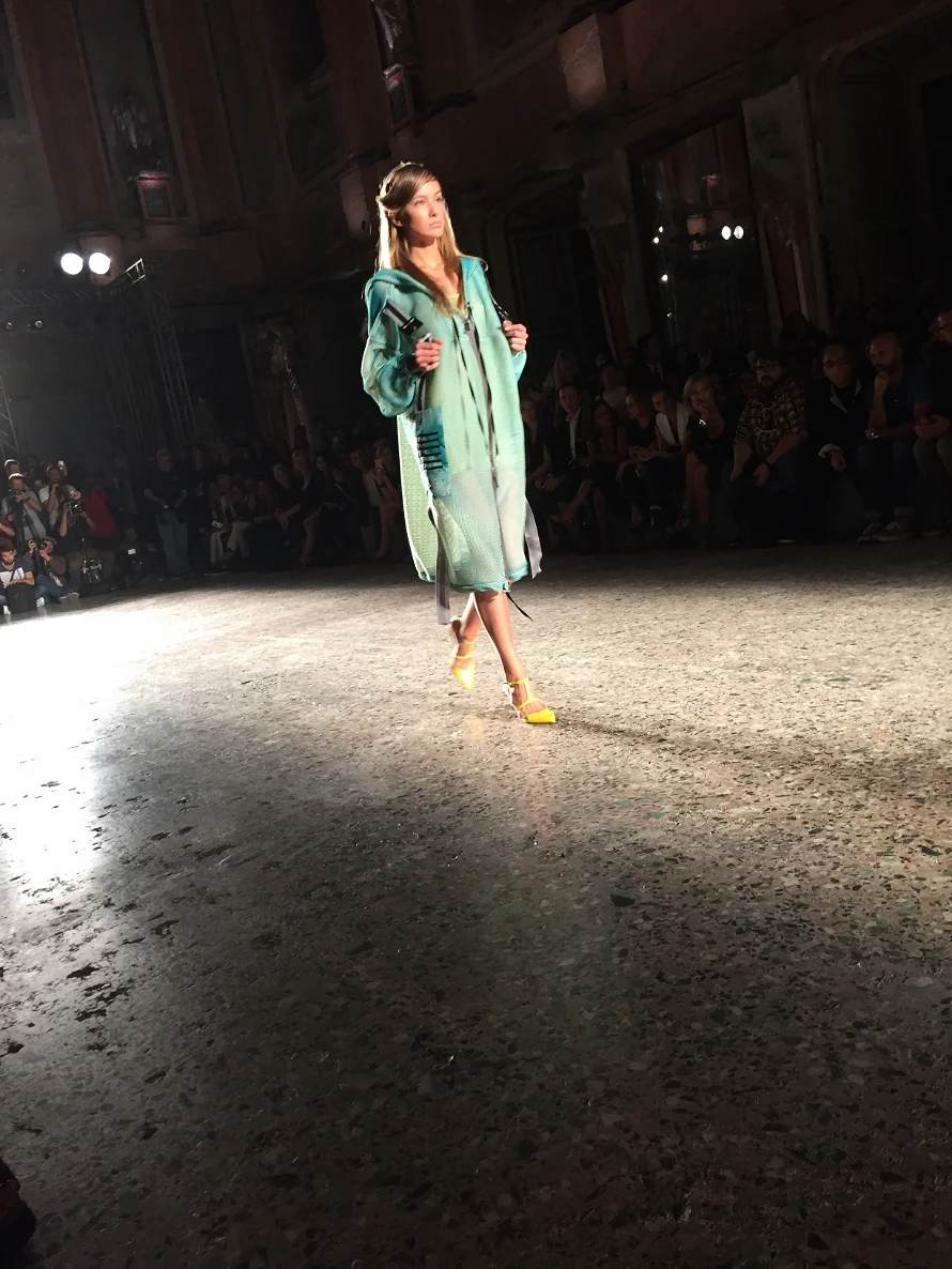 Non c'è un particolare filo conduttore tra le lunghezze dei capi, infatti, si possono notare nella sfilata misure mini, midi e maxi; un segno distintivo di alcuni abiti è il richiamo allo stile semi-impero, che fascia il basso costato ed il gusto di non avere una sessualità ben definita, una collezione dalle note unisex dove anche l’uomo viene interpretato come una figura lievemente femminile (forse troppo), con capelli lunghi e tratti del viso molto dolci e delicati (decisamente troppo). Un uomo che deve indossare certe creazioni, deve essere molto maschile; maschile nei comportamenti e sopratutto nel fisico... forse meglio lasciare perdere...