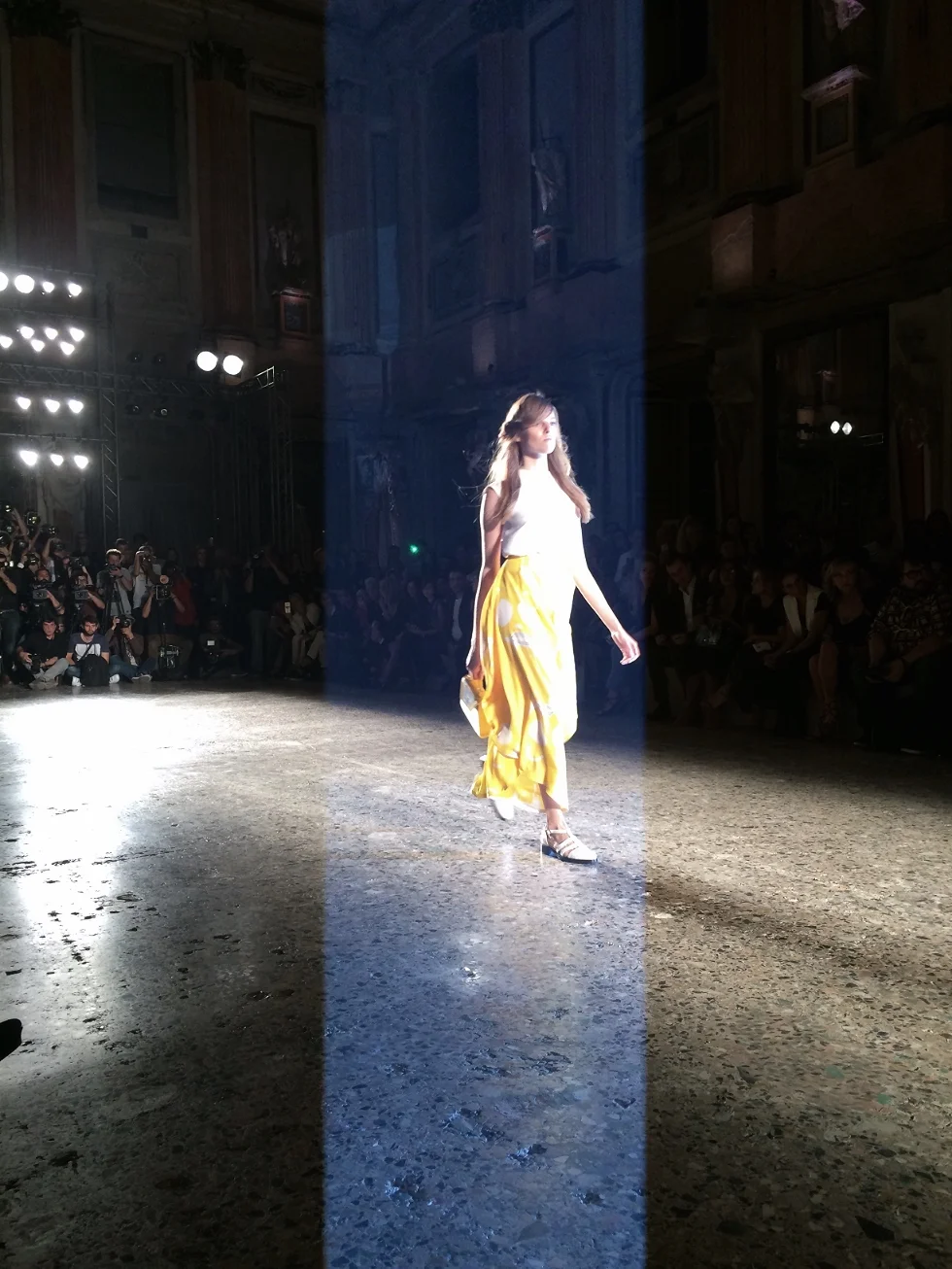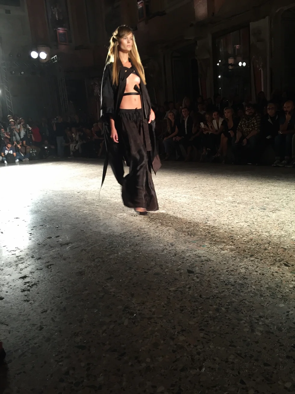 Una collezione grintosa, energica, giovane e anticonformista; un evento diretto dalla show producer di fama internazionale, nonché una cara amica, Angela Marcato, reso ancora più unico, dall’incantevole cornice della sala delle Cariatidi di Palazzo Reale a Milano.