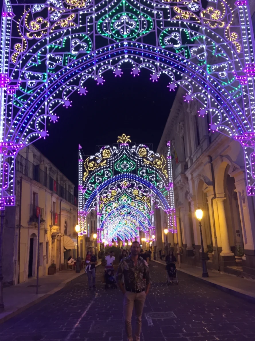 Verso l’entroterra un altra tappa è stata Palazzolo Acreide, sopratutto vissuta di sera durante i festeggiamenti di San Sebastiano (il santo dal quale prenderà il nome mio figlio), celebrazioni che durano per ben 10 giorni, in cui la città è in perenne festa con addobbi che farebbero invidia anche alle decorazioni natalizie dei paesi nordici. È stato un peccato non aver potuto viverla nei giorni precedenti al mio arrivo, perché mi sono perso tutte le diverse parate.